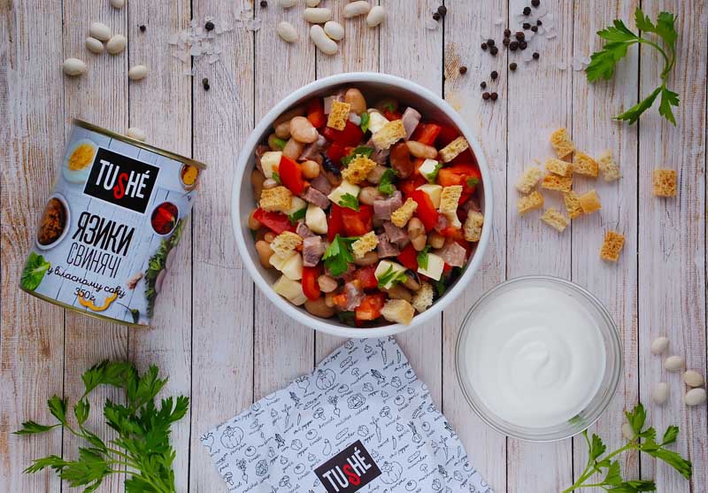 Салат з тушковаим язиком та квасолею.